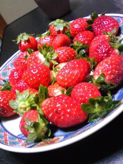 食後のデザートに苺♪おちおとめ、です☆1パック400円!お高いですが甘くて美味しいです☆(*´▽`*)ノ